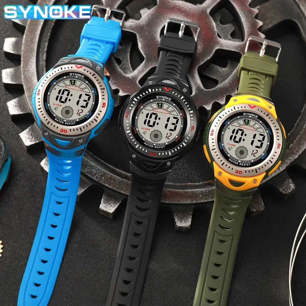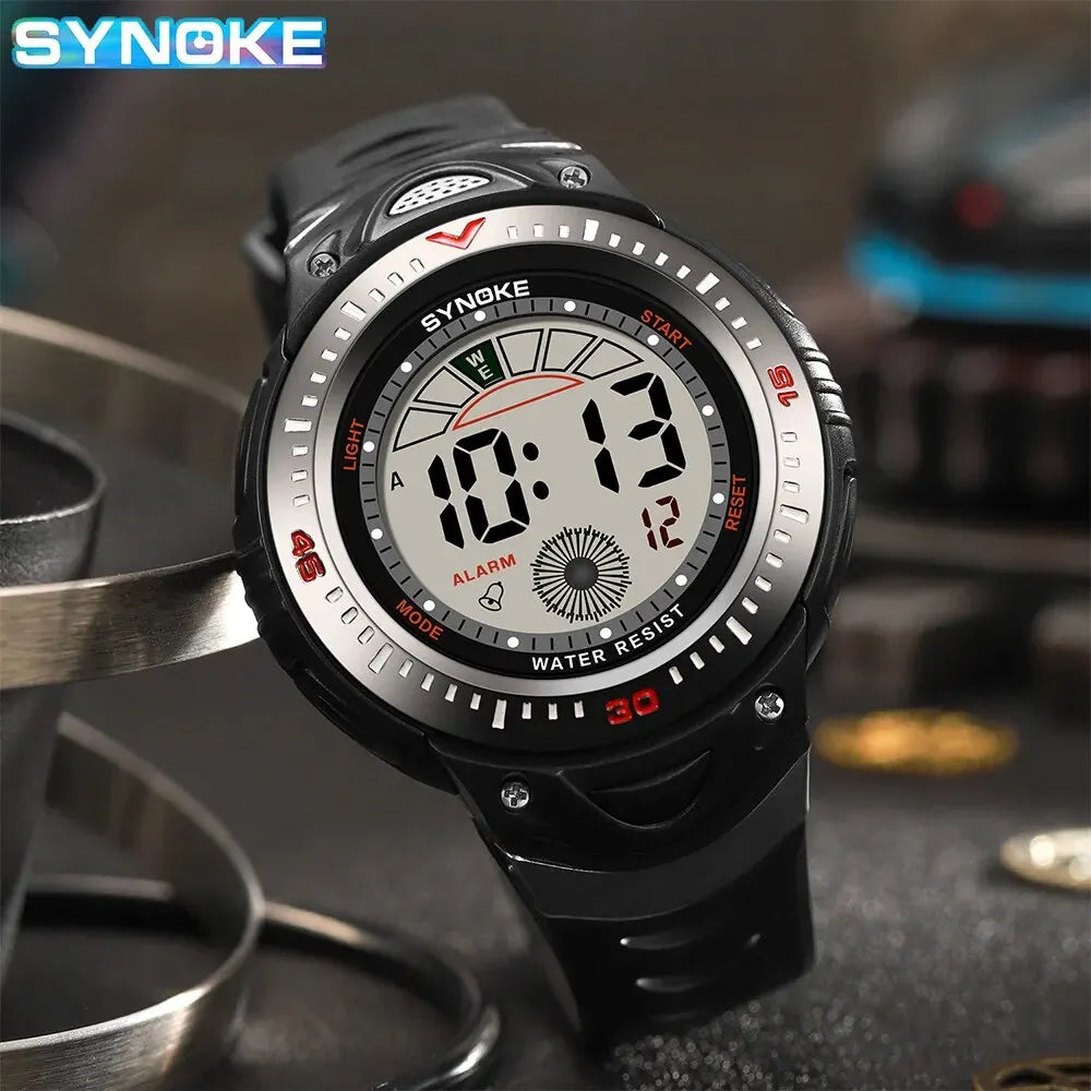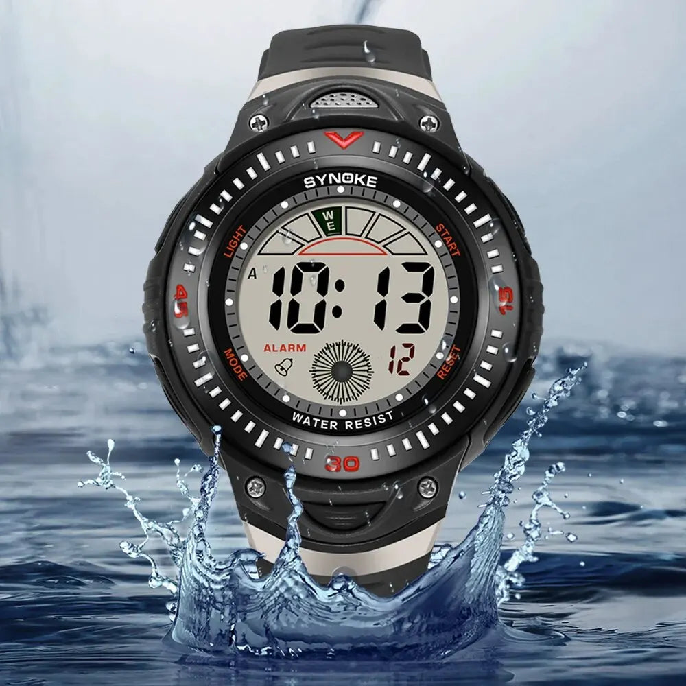 Orologio sportivo da uomo con display digitale e quadrante da 48 mm. Cinturino in gomma resistente e chiusura a fibbia. Funzioni integrate: retroilluminazione, calendario completo, sveglia e visualizzazione della settimana. Resistente agli urti, certificato CE e impermeabile fino a 3 ATM. Peso leggero 58 g, ideale per sport e tempo libero