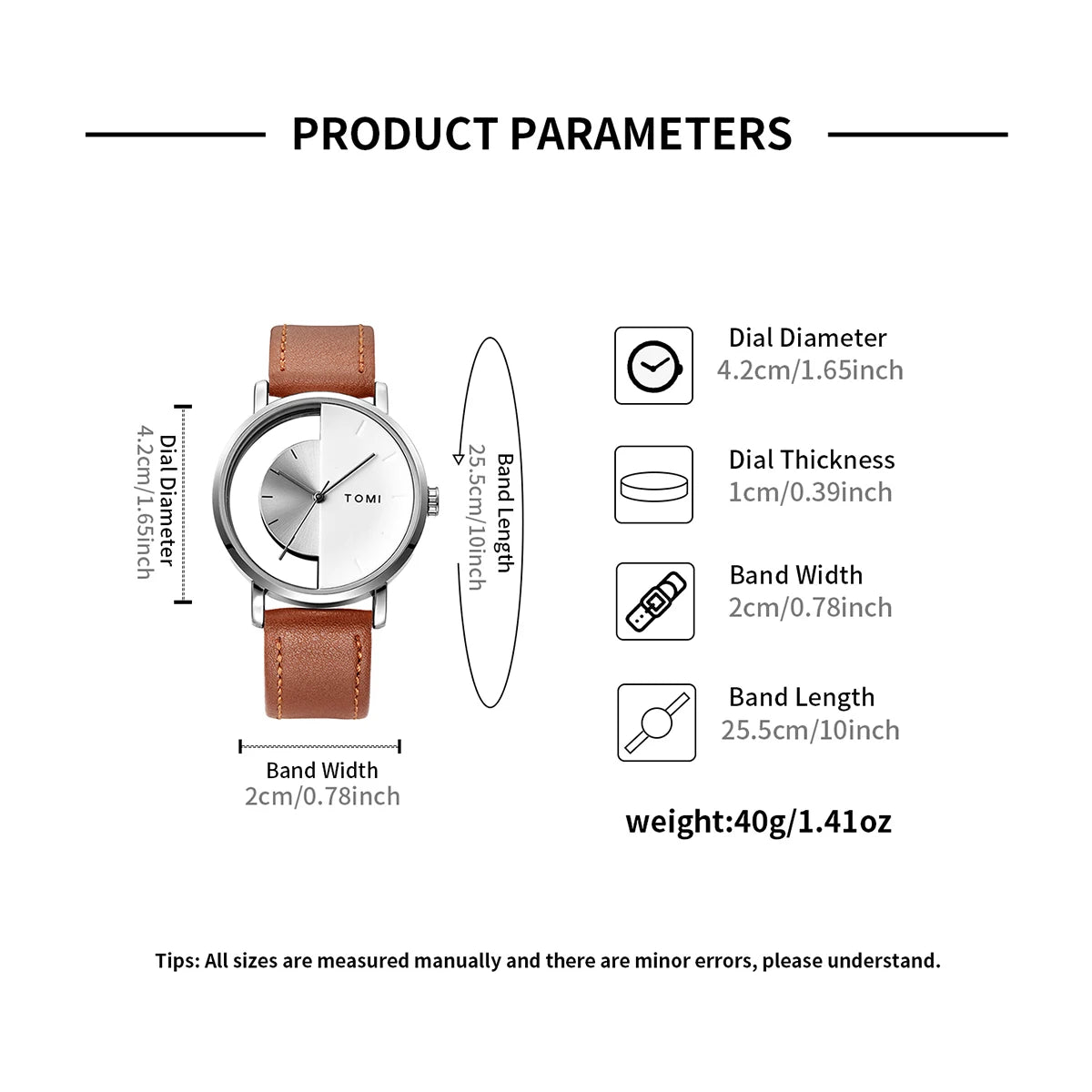 Orologio da uomo al quarzo con quadrante da 42 mm e cassa rotonda in lega. Cinturino in PU resistente con chiusura a fibbia. Vetro trasparente e stile moda/casual adatto a ogni occasione.