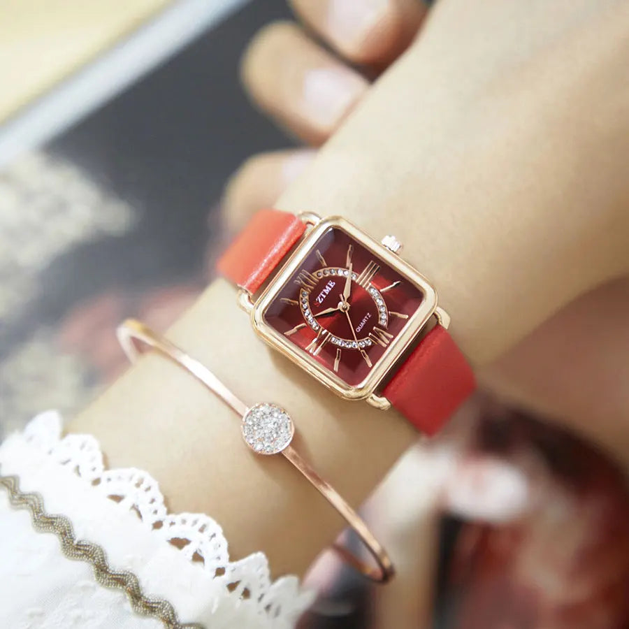 Orologio Donna Quarzo Similpelle Quadrante Quadrato 33mm Elegante