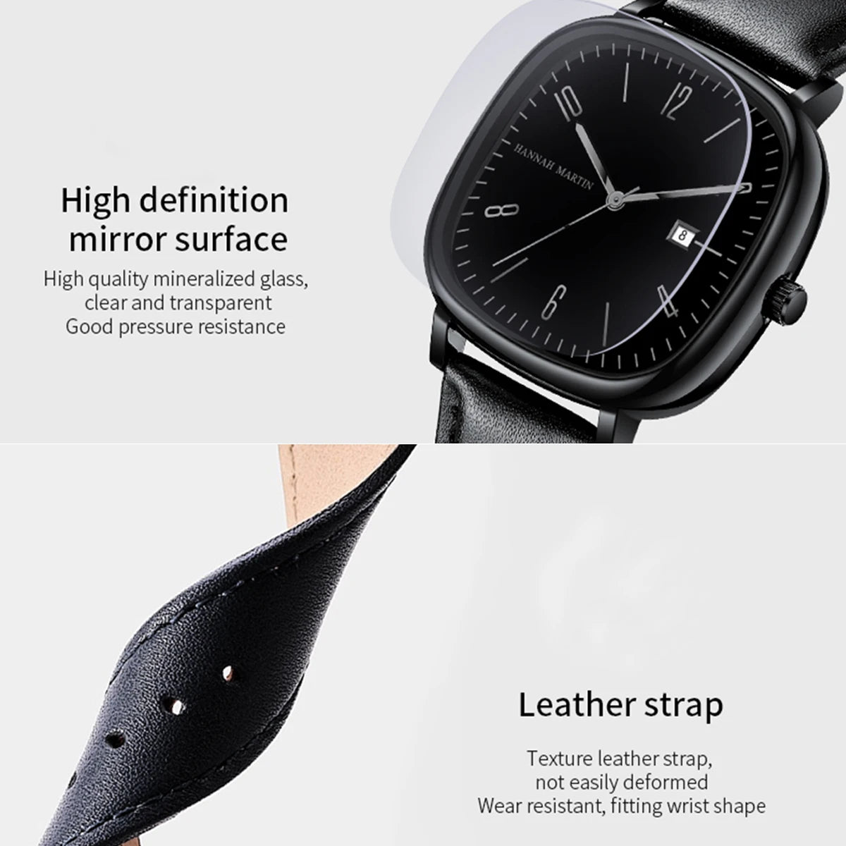 Orologio da uomo al quarzo con quadrante quadrato da 40 mm e cinturino in similpelle con fibbia a gancio. Cassa in lega con vetro Hardlex resistente, design elegante e alla moda, perfetto per un look casual o formale.