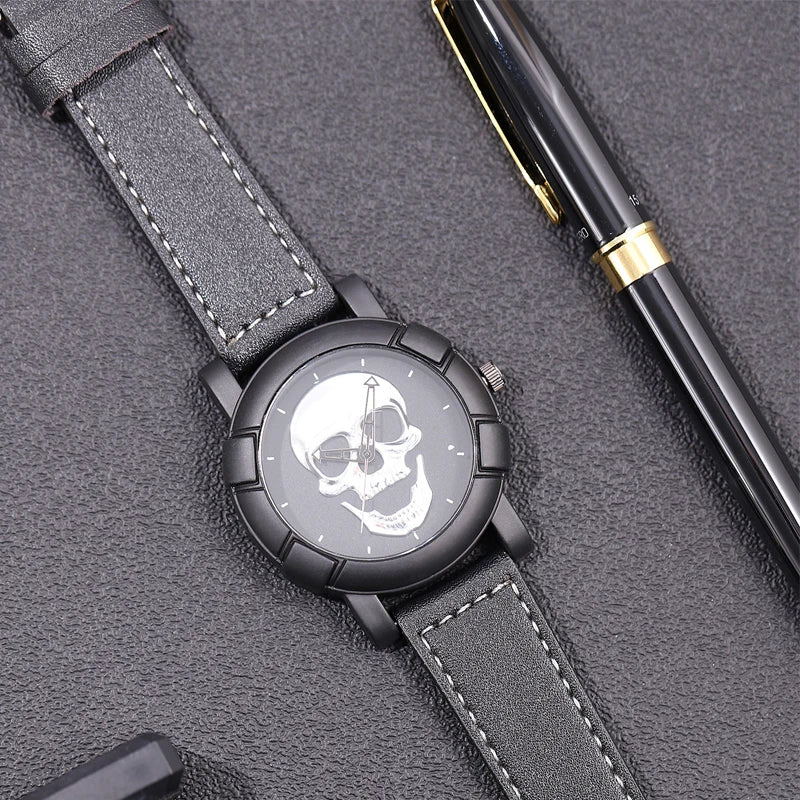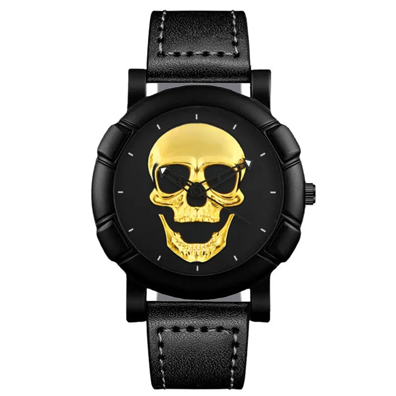 Orologio Uomo Moda al Quarzo con Teschio 3D Cinturino Similpelle Casual