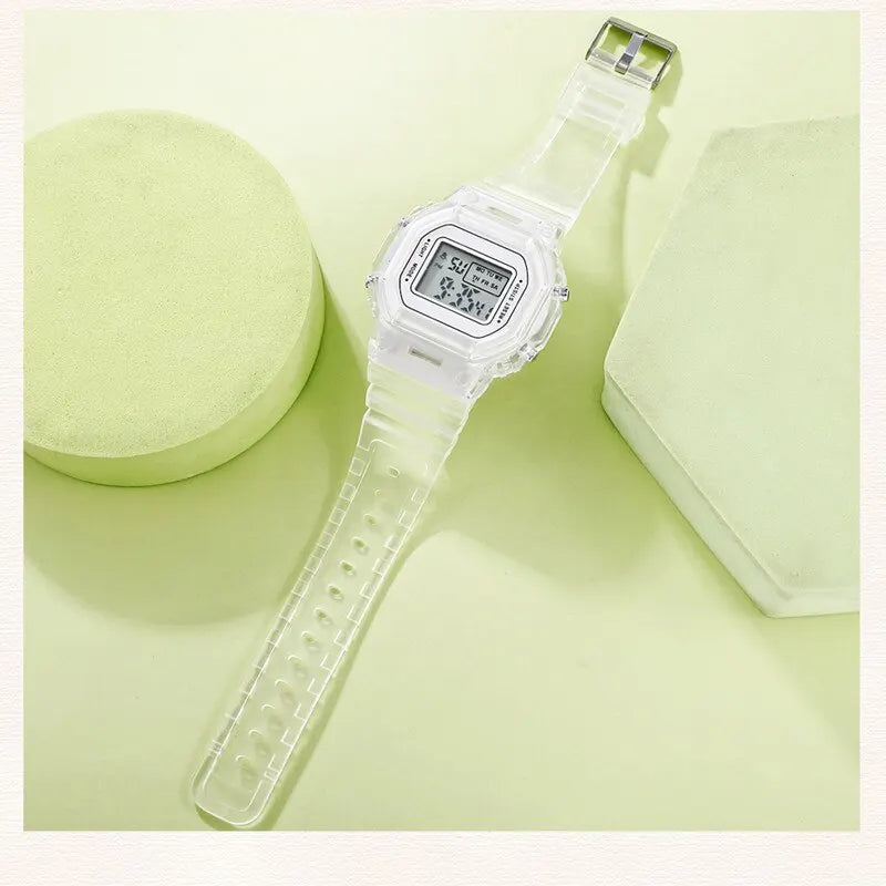 Orologio digitale da donna dal design sportivo e moderno, con display a LED e cinturino in silicone comodo e resistente. Ideale per l’uso quotidiano, lo sport e il tempo libero.