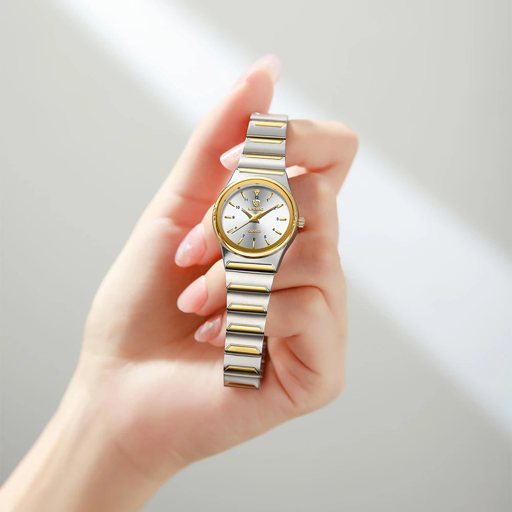Orologio da donna elegante e raffinato con cinturino in acciaio, quadrante rotondo da 25 mm e movimento al quarzo. Design compatto e alla moda, perfetto per tutti i giorni o come accessorio elegante.