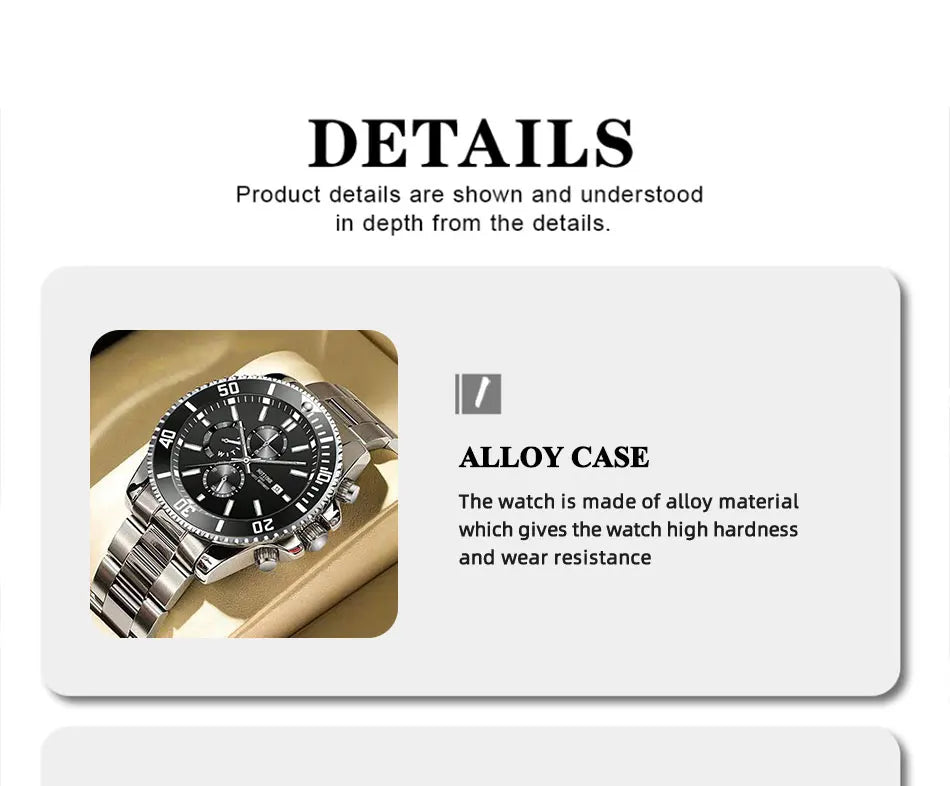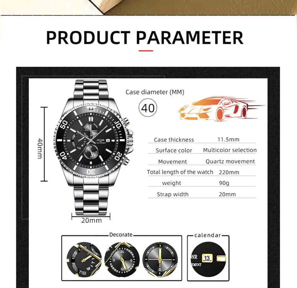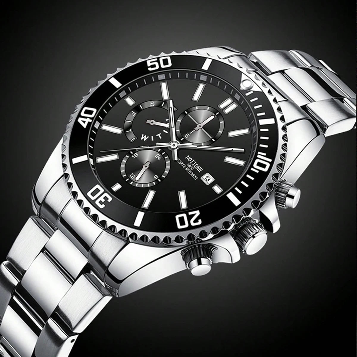 Orologio Uomo Acciaio Inox Quarzo – Elegante Data Quadrante 40 mm