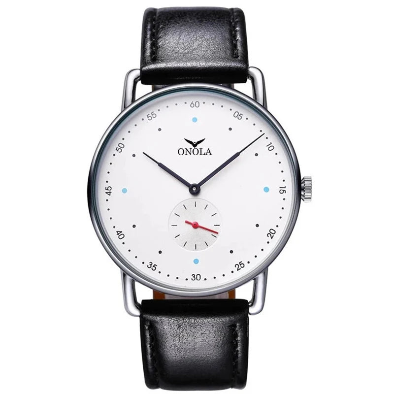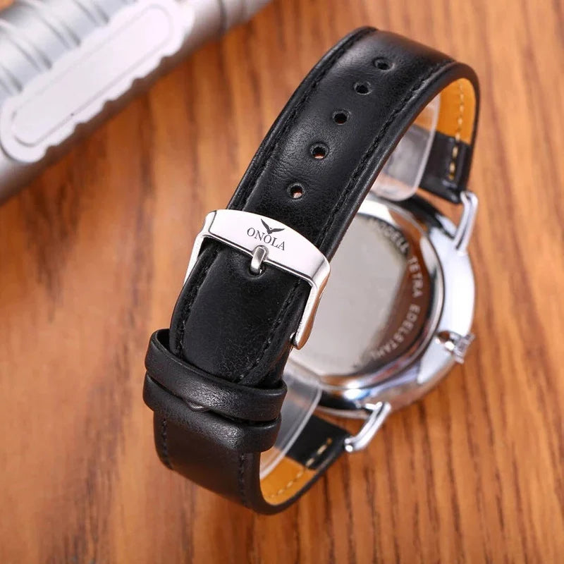 Orologio da uomo al quarzo dal design ultrasottile e classico. Il cinturino in similpelle e la cassa in lega lo rendono leggero ed elegante, ideale per un look raffinato e professionale.
