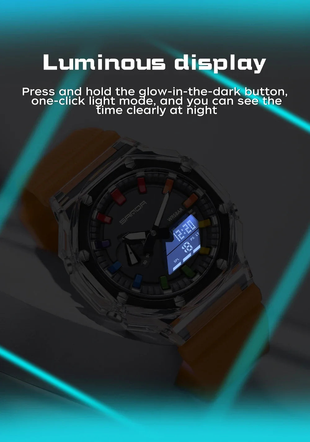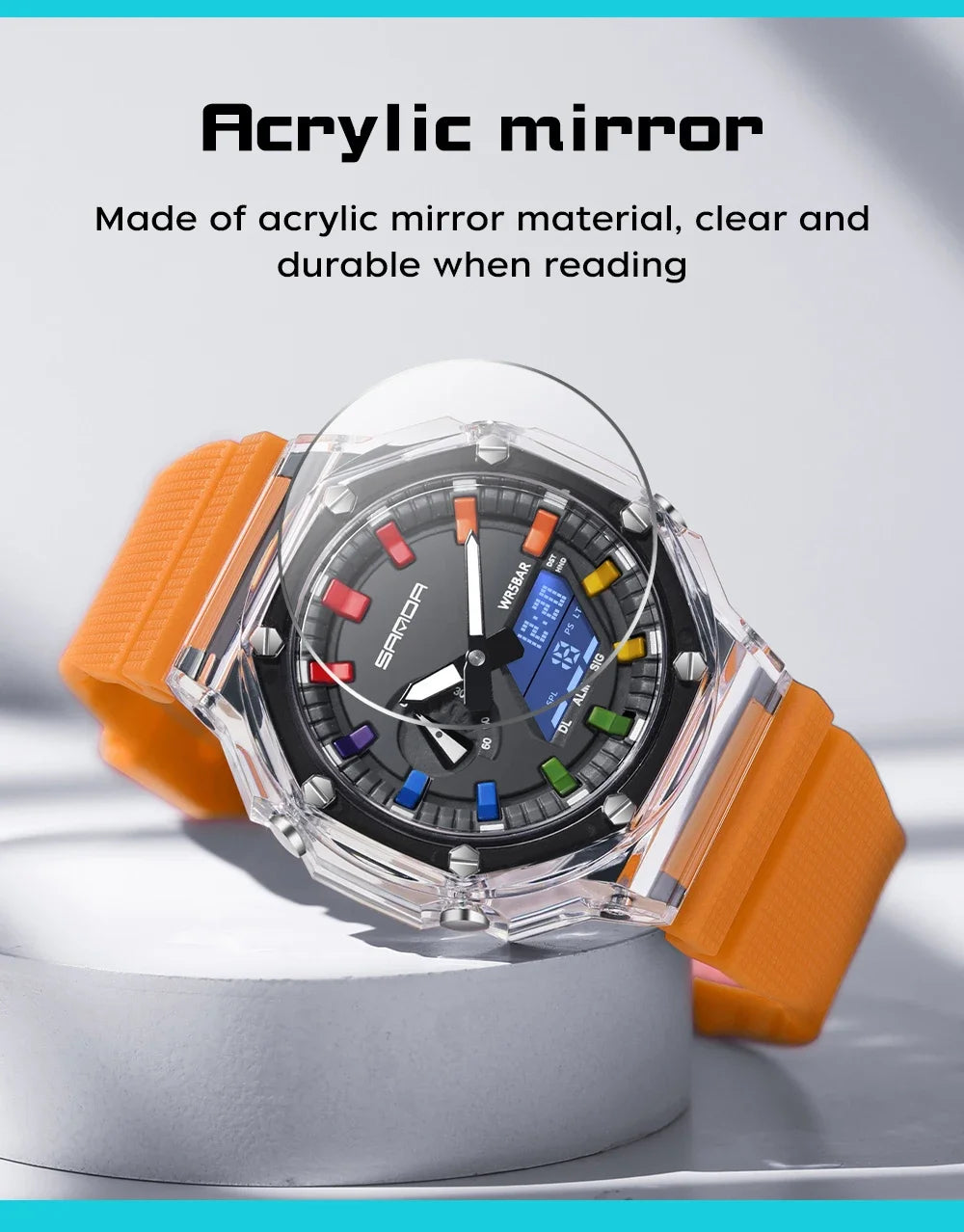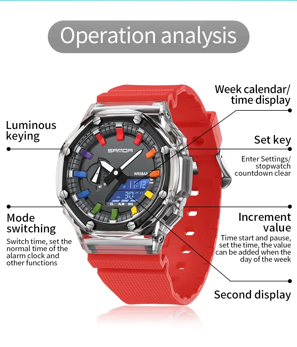 Questo orologio digitale da uomo combina robustezza e funzionalità sportive. Dotato di un quadrante da 46 mm con display LED, offre una lettura chiara e immediata dell’ora. La struttura antiurto e la cassa in gomma rinforzata garantiscono resistenza agli urti e durabilità, ideale per attività dinamiche. Il movimento al quarzo assicura precisione e affidabilità nel tempo, rendendolo un accessorio pratico e performante per chi cerca un orologio sportivo di qualità.