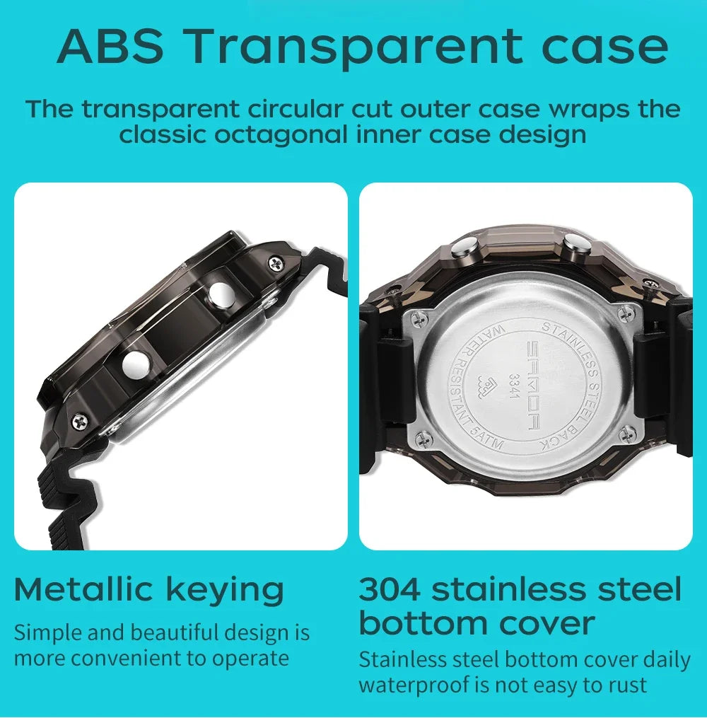 Orologio Digitale Uomo LED Antiurto Quarzo Sportivo Gomma Rinforzata Quadrante 46 mm