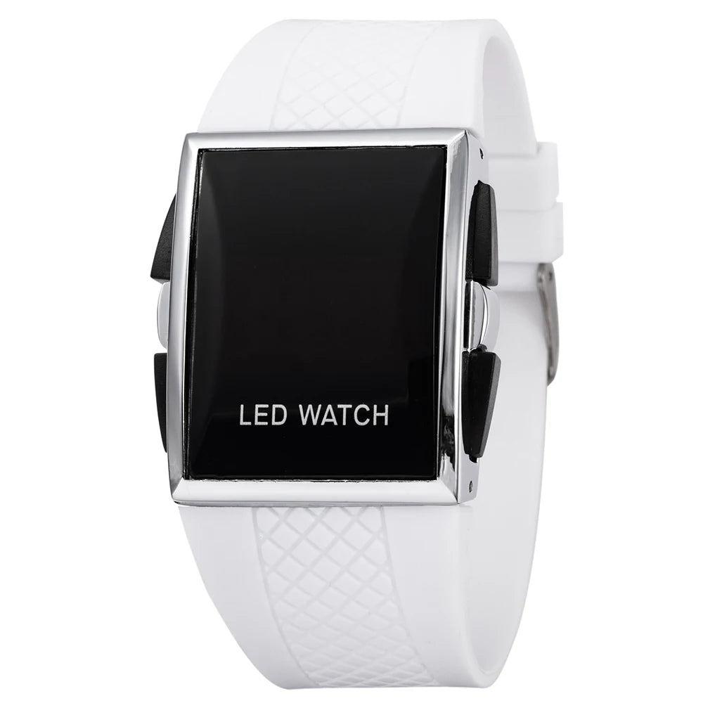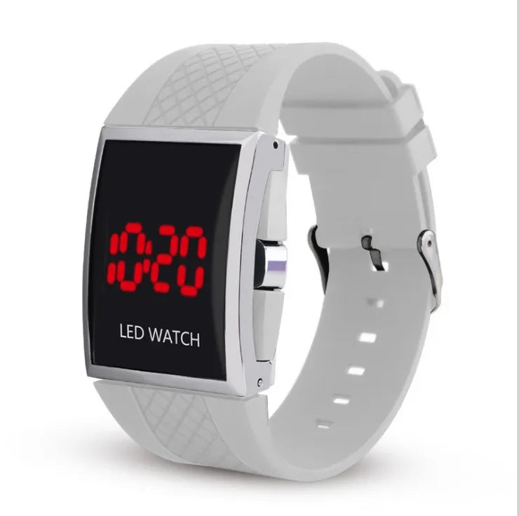 Orologio digitale da uomo con display LED a luce rossa, dal design semplice e moderno. Il cinturino in silicone garantisce comfort e leggerezza, ideale per l’uso quotidiano.