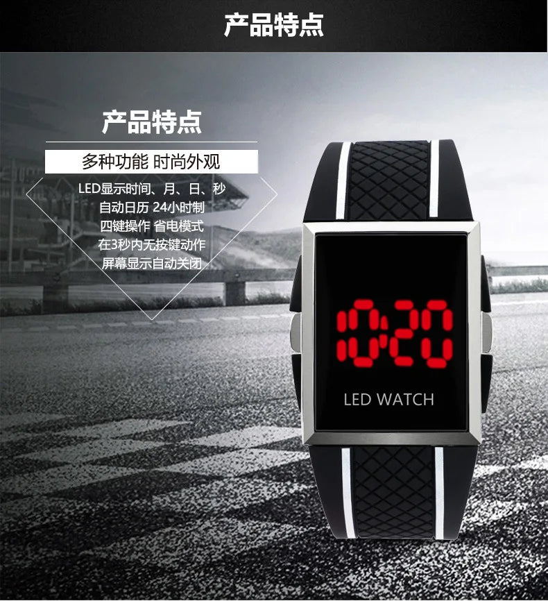 Orologio Uomo LED Digitale Display A Luce Rossa Cinturino In Silicone Moda Casual