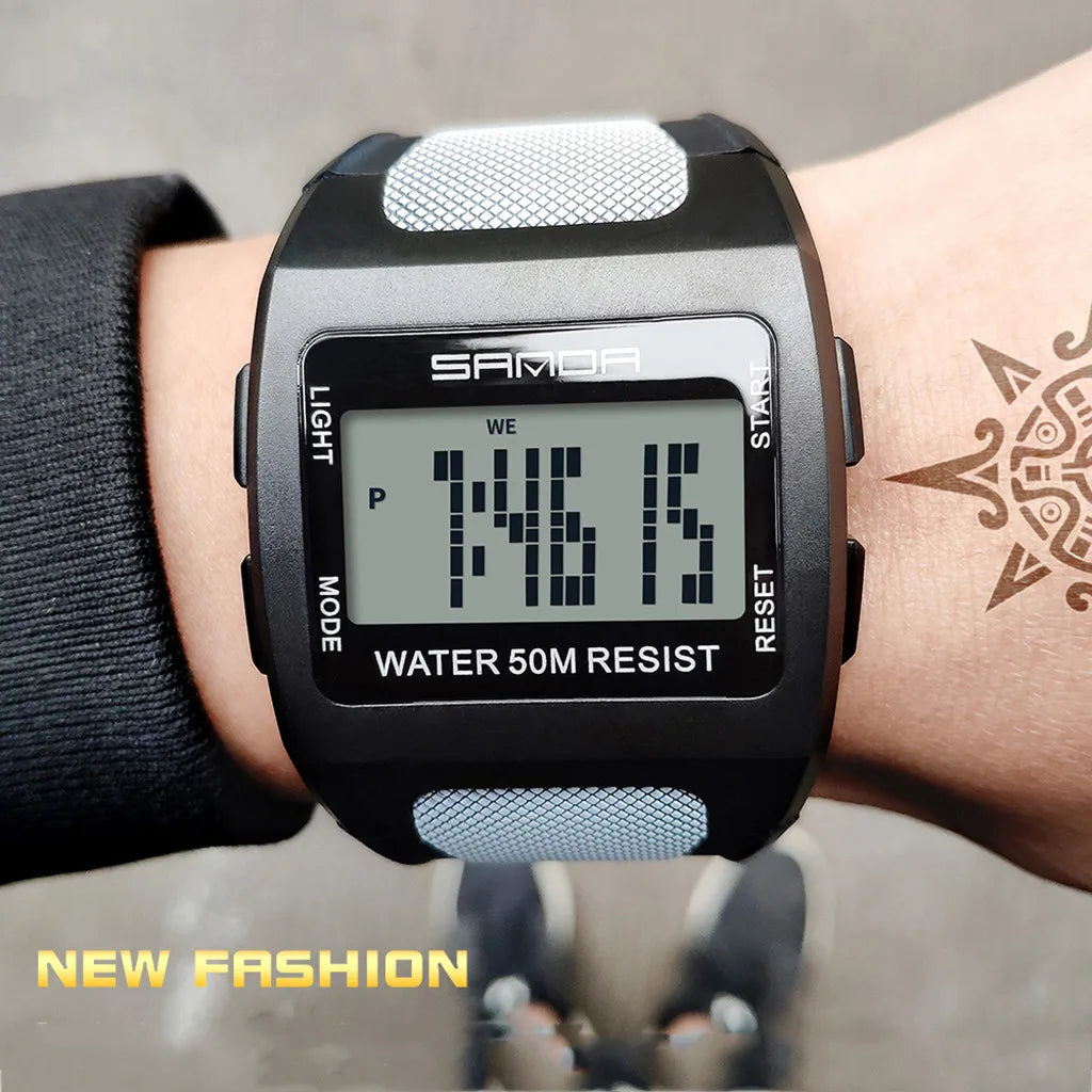 L'orologio sportivo digitale da uomo combina funzionalità avanzate e design resistente. Dotato di display LED chiaro e leggibile, offre impermeabilità fino a 5 ATM, ideale per attività quotidiane e sportive. Il cinturino in PU garantisce comfort e durata, mentre la struttura robusta assicura resistenza agli urti. Perfetto per chi cerca precisione e praticità in un orologio versatile e affidabile.
