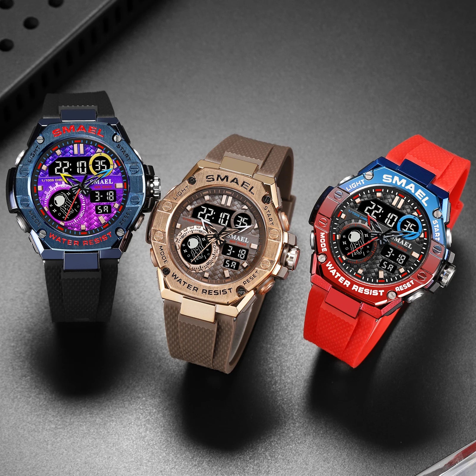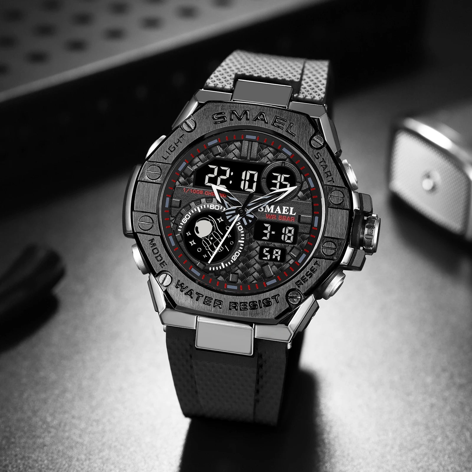 Orologio sportivo da uomo con display analogico-digitale e funzioni complete. Realizzato in gomma resistente, offre comfort e solidità per l’uso quotidiano e sportivo. Dotato di cronometro, sveglia, retroilluminazione e resistenza agli urti.