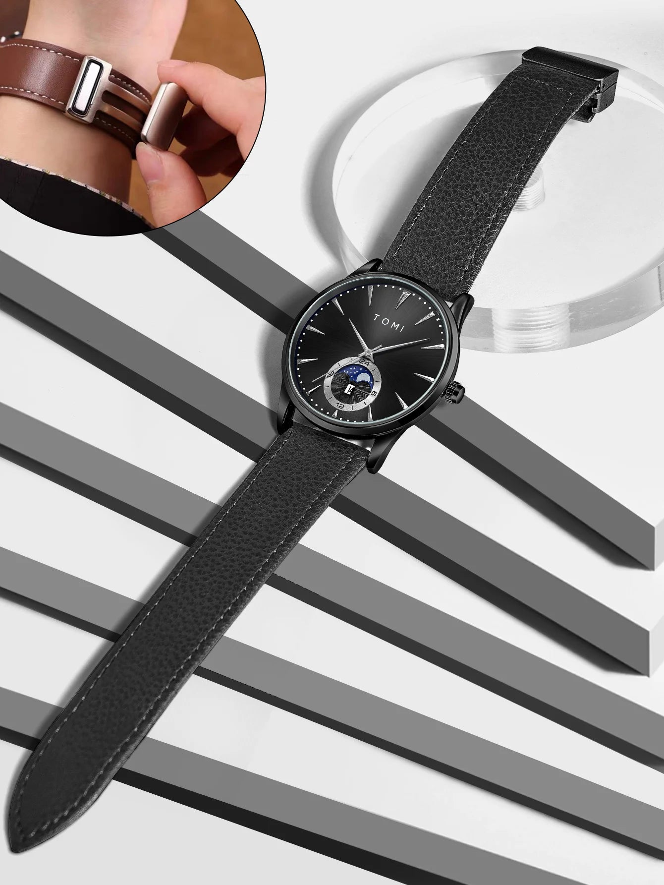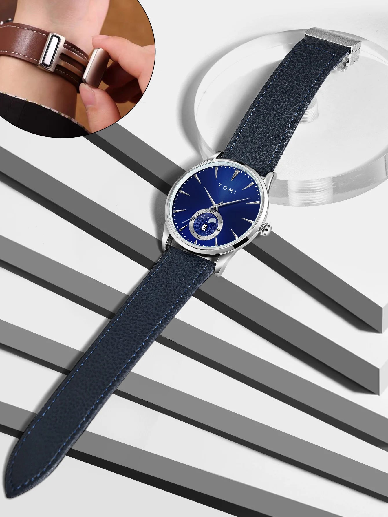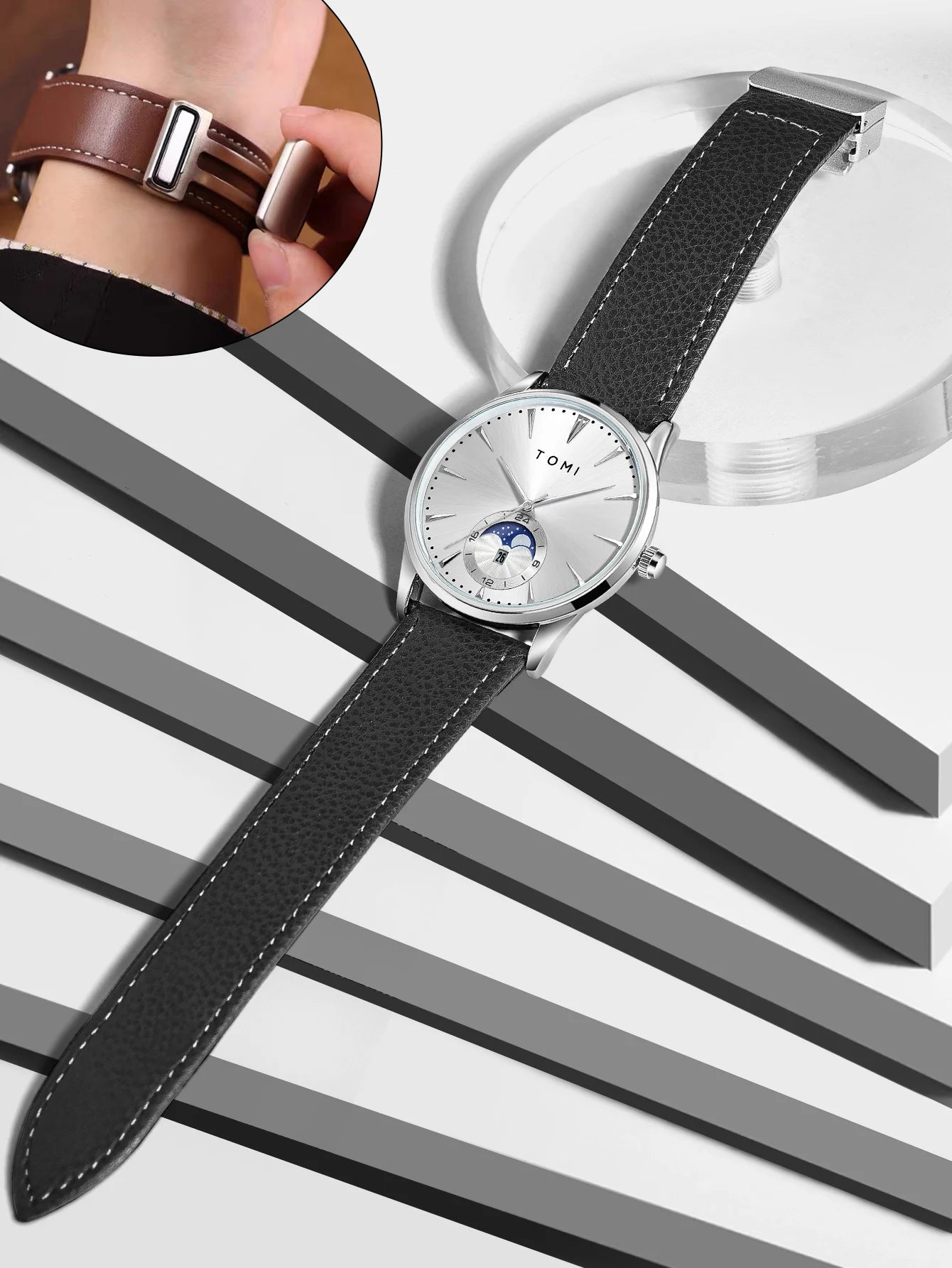 Questo orologio da uomo con movimento al quarzo unisce eleganza e praticità grazie al cinturino in similpelle e al quadrante da 42 mm, ideale per un look sia formale che casual. La precisione del quarzo garantisce affidabilità, mentre il design sobrio e raffinato si adatta facilmente a diverse occasioni, offrendo comfort e stile senza compromessi.