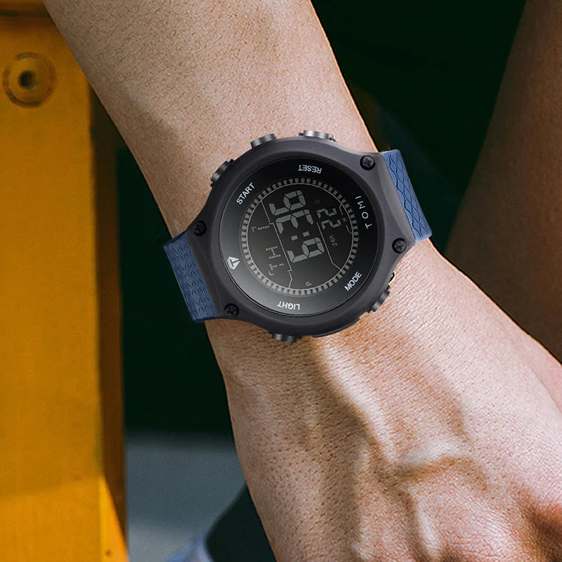 Orologio digitale da uomo con cassa rotonda in poliestere e cinturino in PU resistente. Design sportivo e moderno con quadrante grande da 50 mm, ideale per chi cerca stile e praticità quotidiana. Movimento digitale preciso e display facile da leggere.