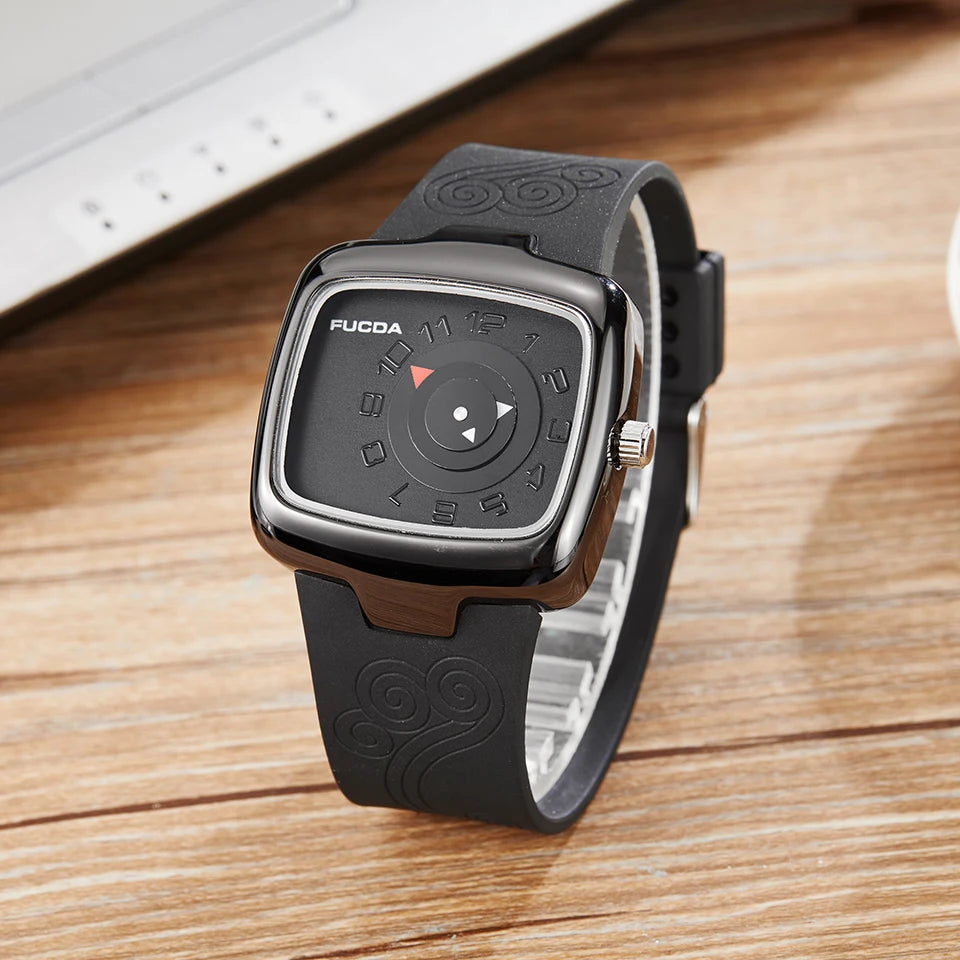 Orologio da uomo moderno e leggero, con cinturino in gomma resistente, quadrante da 41 mm e movimento al quarzo affidabile. Design sportivo e casual, perfetto per l’uso quotidiano.